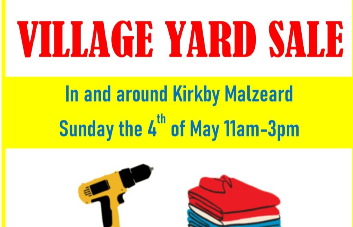Kirkby Malzeard village yard sale, Sunday the 4th of May- 11am-3pm.